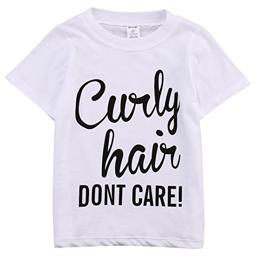 BiggerStore Kids Baby Girl Curly Hair Don’t Care Printed Summer White T-shirt Short Sleeve Tops (2T)