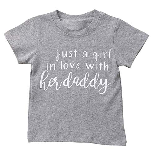 • ♥♡Toddler girls t-shirts with saying Just A Girl In Love With Her Daddy,Casual, Short Sleeve,O-Neck,Fashion Tees,Simple and Funny Saying Print, Summer Short Sleeve, Soft Cotton T Shirts Tops