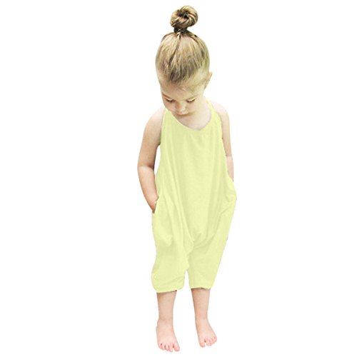 Franterd Baby Girls Straps Rompers, Kid Jumpsuits Piece Pants Clothing (Yellow, 4T)