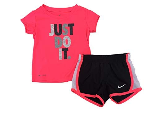 Nike Girl’s Graphic-Print T-Shirt & Shorts 2 Piece Set (Black(16D263-023)/Pink/White, 12 Months)
