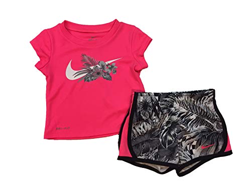 Comfortable and fun for sporty days and beyond, Nike’s two-piece set pairs a cheerful graphic-print T-shirt with breathable mesh shorts for a cute athletic look.