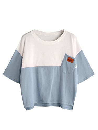 SweatyRocks Women’s Color Block Half Sleeve High Low Casual Loose T-shirt Tops (M, Blue_White)