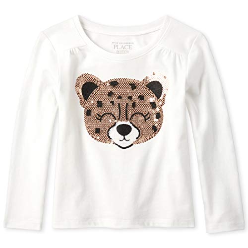 The Children’s Place Baby Girls Graphic Sequin Loose Fitting Long Sleeve T-Shirt, Simplywht, 12-18MOS