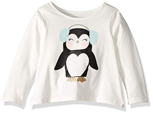The Children’s Place Baby Girls Long Sleeve Glitter Graphic Top, Snow, 12-18MOS