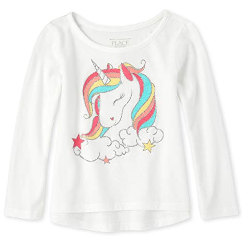 The Children’s Place Baby Girls Long Sleeve Graphic High-Low T-Shirt, Simplywht, 6-9MONTHS