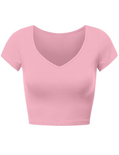 - V Neck, Round Neck, Short sleeve, Crop top, Pure color.