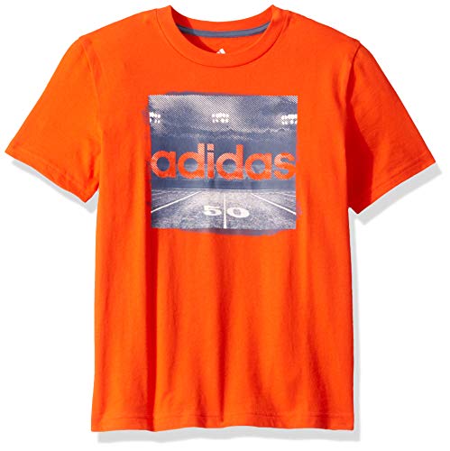 Adidas Boys’ Big Short Sleeve Cotton Jersey Graphic T-Shirt, Football Night Game Orange, XL(18/20)