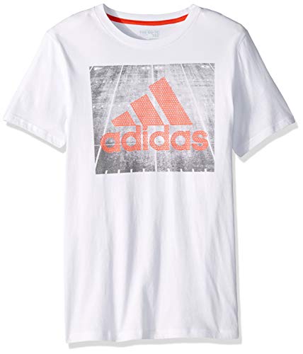 adidas Boys’ Big Short Sleeve Graphic Tee Shirt, Field c White/Orange M (10/12)
