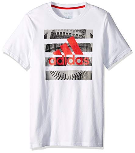 adidas Boys’ Big Short Sleeve Graphic Tee Shirt, Hacked White, M (10/12)