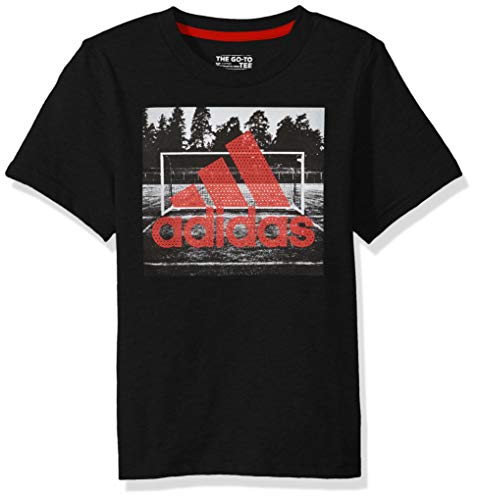 - Screen print features sport ball field photo with a bold knit texture Adidas brand mark