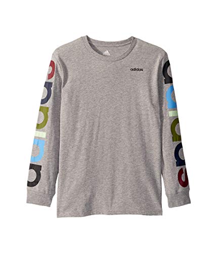 A bold adidas graphic down the sleeve makes this long sleeve t-shirt a must-have for his active collection.