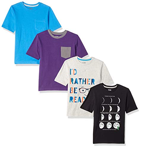 Amazon Brand – Spotted Zebra Boys’ Big Kid 4-Pack Short-Sleeve T-Shirts, Books And Space, XX-Large (14)