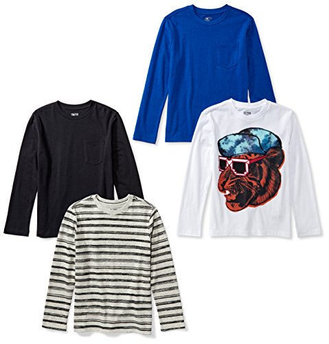 Amazon Brand – Spotted Zebra Boys’ Little Kid 4-Pack Long-Sleeve T-Shirts, Cool Cat, Small (6-7)