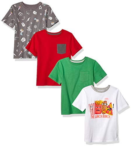 Amazon Brand – Spotted Zebra Boys’ Little Kid 4-Pack Short-Sleeve T-Shirts, Lunch Bunch, X-Small (4-5)
