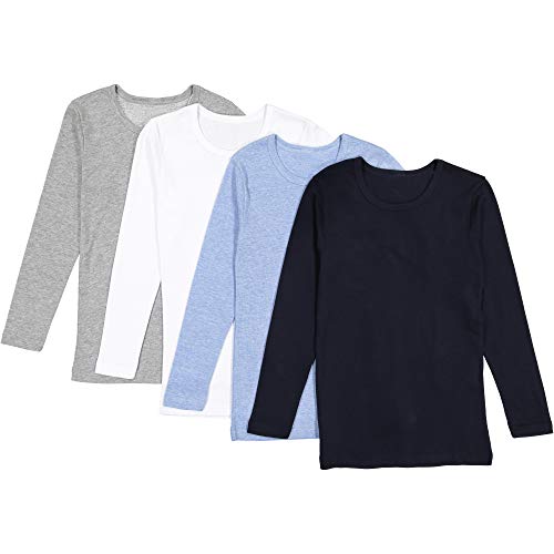 - Toddler and Big Boys Cotton long sleeve crew tees Super Soft Ultra Comfort TAGLESS T SHIRTS. Includes 4 Tee shirts White, Navy, Heather Grey, Chambray.