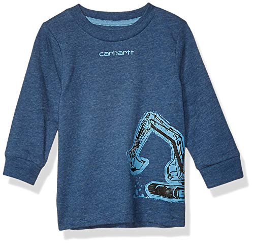 - Long sleeve tee with contrast neck tape. Construction wrap screen print on lower center front and Carhartt logo screen print on center front