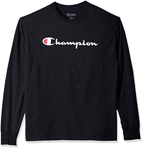 Champion Men’s Graphic Classic Jersey LS Tee, Black/Black, Medium