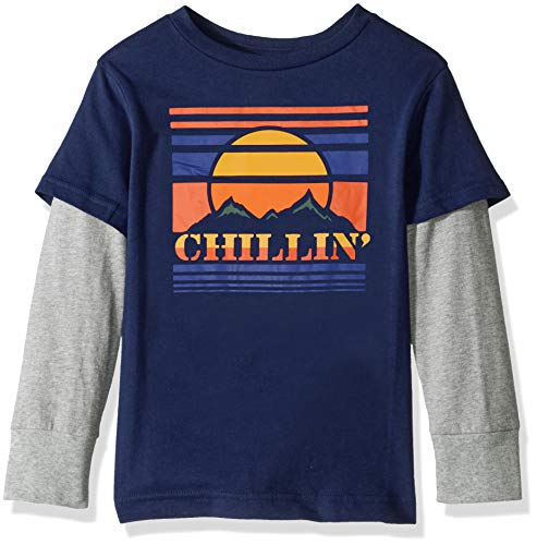 Crazy 8 Boys’ Big Long Sleeve 2-Fer Graphic Tee, Navy Grey Chillin, M