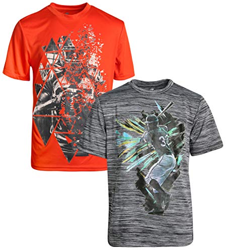 Energy Zone Boy’s Dri-Fit Performance Active Graphic T-Shirts (2-Pack) Heather Grey/Orange, Size X-Large – 14/16′