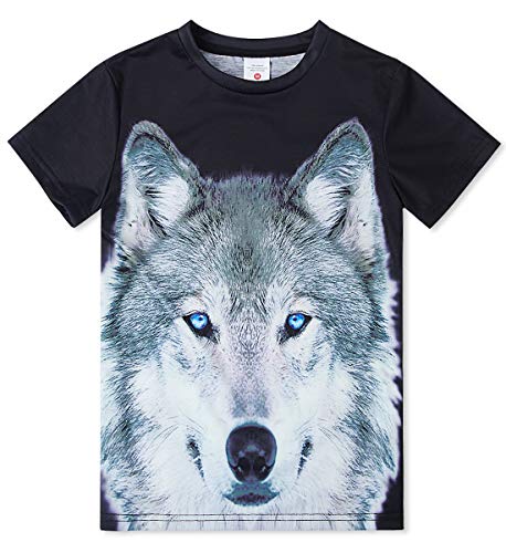 Enlifety Fashion Kids Boys Girls’ Animal Wolf Graphic Tee Tops Short Sleeve T-Shirt Clothes, Black Wolf, S/6-8 Years