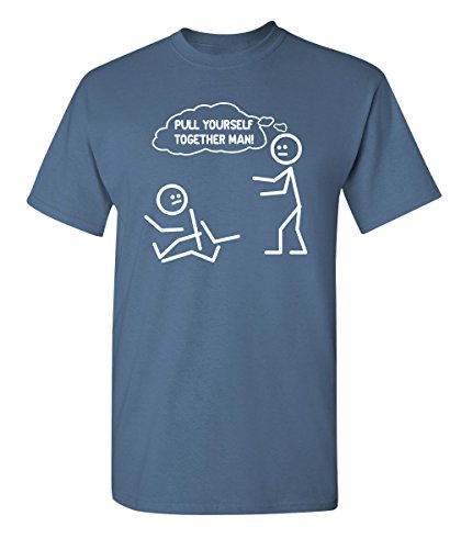 Pull Yourself Together Man! Funny T-Shirt. The best part is when you pull this shirt over your head you become the center of attention. The finest quality cotton tee. They fit great, preshrunk and we only use brand name tees. The t-shirts are heavy weight cotton tees. We have over 1000 designs. Check out our store for more funny and novelty t shirts that will become your favorite.