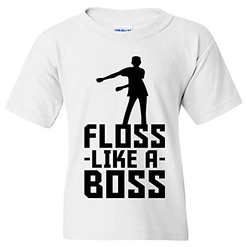 Floss Like A Boss – Flossin Dance Funny Emote Youth T Shirt – Large – White w/Black Print