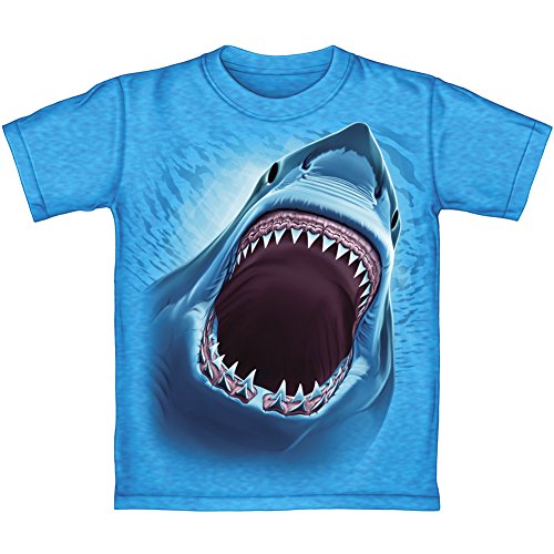 GREAT WHITE SHARK HEATHERED BLUE TEE SHIRT Buyer can choose their own size from KIDS (XS-L). Please check out our other affordable items from DAWHUD DIRECT! *Heathered Tee Shirts are made with 50% Cotton and 50% Polyester blend