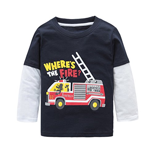 HowJoJo Boys Long Sleeve Cotton T-Shirts Cartoon Shirt Graphic Tees Blue 4T