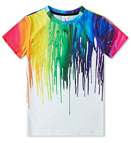 Idgreatim Youth Girls Boys Funny T Shirt Paint Melting Graphic Short Sleeve Tees Active Loose Sports Tops Blouse for Running 10-12 Years