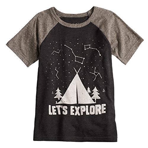 Jumping Beans Boys T-Shirt Raglan Short Sleeve Space Print (Stars Charcoal, 7)