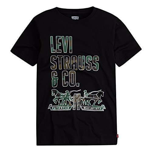 Levi’s Boys’ Big Two Horse Pull Graphic T-Shirt, Black/Camo, L