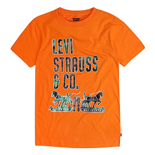 Levi’s Boys’ Big Two Horse Pull Graphic T-Shirt, Orange Peel L