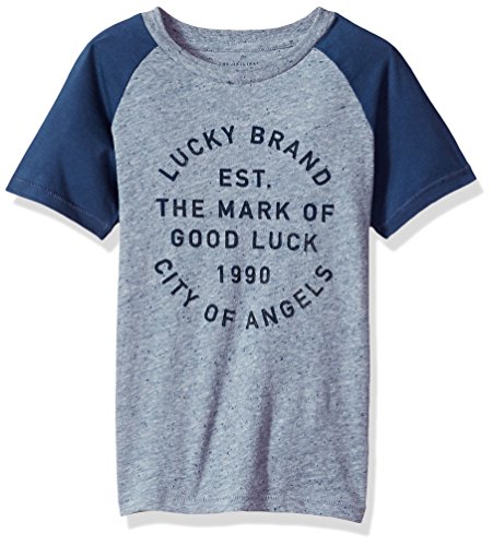 Lucky Brand Big Boys’ Short Sleeve Cali Graphic Tee Shirt, Lucky Baseball Dark Denim, Medium (10/12)