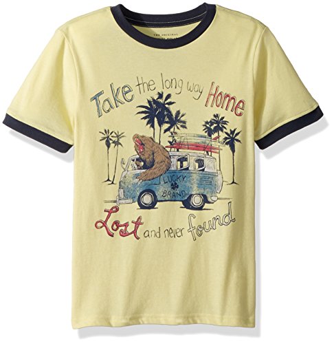 Lucky Brand Big Boys’ Short Sleeve Graphic Tee Shirt, Custard Heather Take me Hombre, Large (14/16)