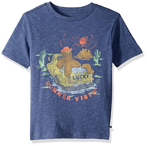 Lucky Brand Little Boys’ Short Sleeve Bear Graphic Tee Shirt, Vibin Blue Indigo, 7