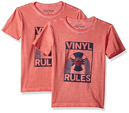 Lucky Brand Little Boys’ Short Sleeve Graphic Tee Shirt, Mineral red, 6