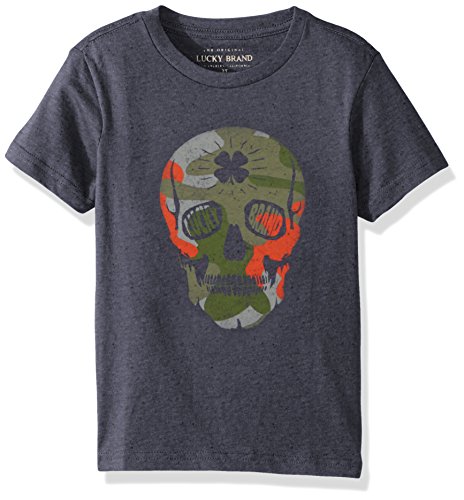 Lucky Brand Little Boys’ Short Sleeve Graphic Tee Shirt, Peacoat Skull, 6