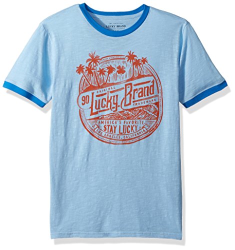 Lucky Brand Toddler Boys’ Short Sleeve Graphic Tee Shirt, Placid Blue Ringer, 4T
