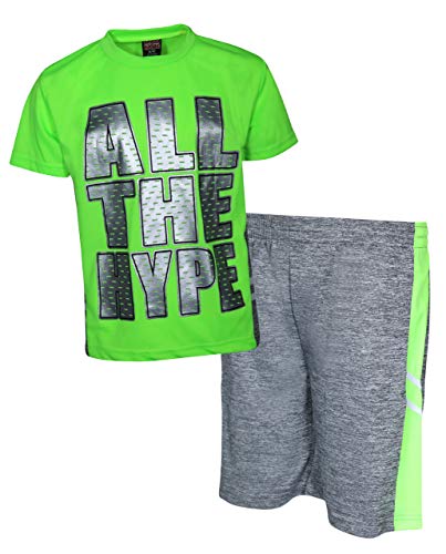 Mad Game Boys 2-Piece Basketball Performance Short Sleeve T-Shirt and Shorts Set (Green Hype, 16/18)’