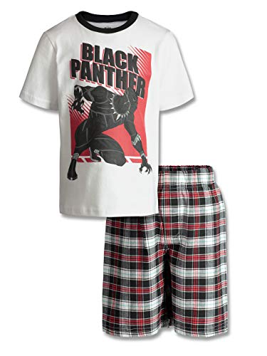 Marvel Avengers Black Panther Boys’ T-Shirt & Shorts Set Plaid, Little Kids (White, 6)