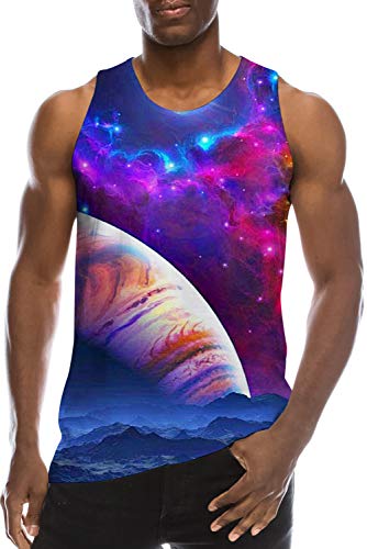 Men Beach Tank Tops 3D Print Blue Planets Space Fun Elongated Muscle Ribbed Workout Undershirt Cool Novelty Galaxy A Back Sleeveless Baggy Jersey Ringer Swimming Party Casual Boys Vest T Shirt Outfits