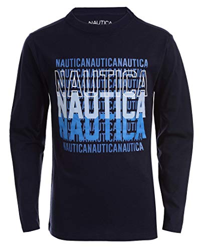 Nautica Big Boy’s Long Sleeve Graphic Print Tee Shirt, Sport Navy, XL18/20