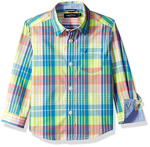 Nautica Big Boys’ Long Sleeve Plaid Woven Shirt, James Lime Punch, Medium (10/12)