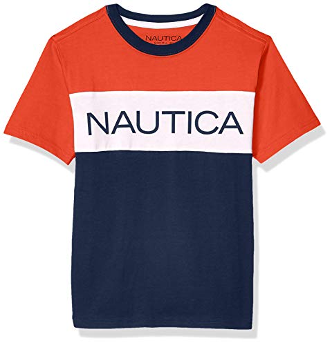 Nautica Big Boy’s Short Sleeve Colorblock Graphic Tee Shirt, mandarin, M10/12