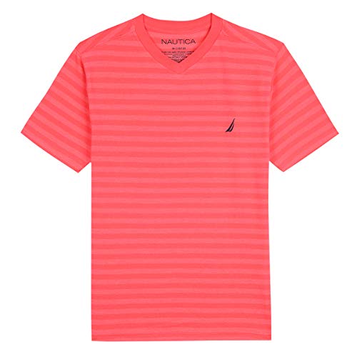 Nautica Big Boys’ Short Sleeve Striped V-Neck T-Shirt, finn Dark Coral Medium (10/12)
