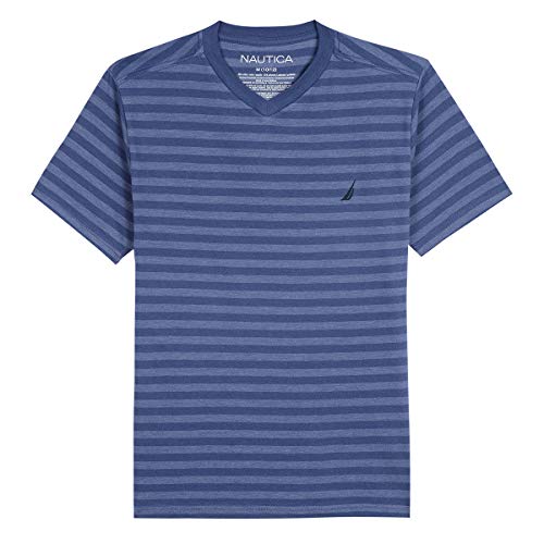 Nautica Big Boys’ Short Sleeve Striped V-Neck T-Shirt, finn Ink, Large (14/16)