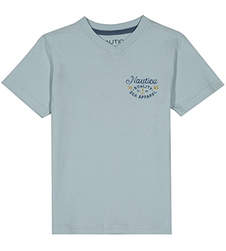 Nautica Boys’ Big Short Sleeve Graphic V-Neck T-Shirt, Ashton Light Blue, X-Large (18/20)