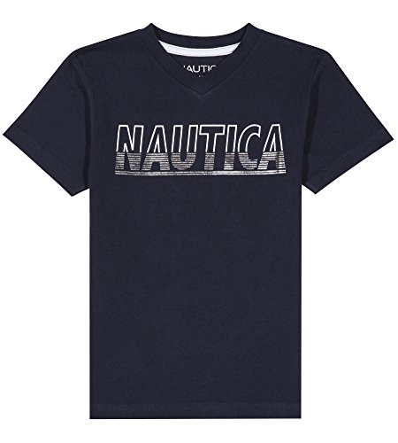 Nautica keeps his style comfortable in a classic v-neck shirt sporting classic Nautica graphics.