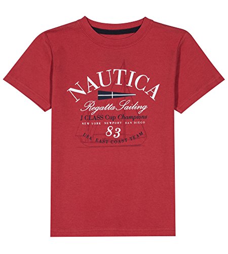 Nautica Boys’ Little Short Sleeve Sailing Graphic T-Shirt, Roan Ruby, 7
