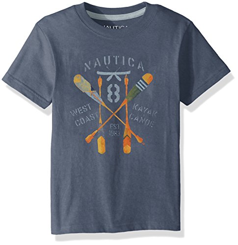 Nautica keeps his style comfortable in a classic crew neck tee-shirt sporting classic Nautica graphics.